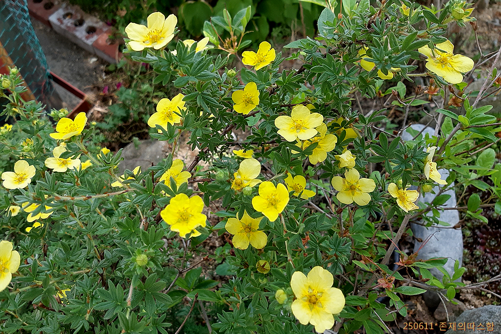 음식점 옆 빈터, 계곡 입구 빈터에 관상용으로 심어진 것이지만 백두산 등 함경도 고산 습지나 바위 틈에 자생하기도 하는 양지꽃속 관목이다. 북부지방에 자생하는 물싸리풀과 아주 비슷하지만 물싸리풀은 여러해살이풀이다.