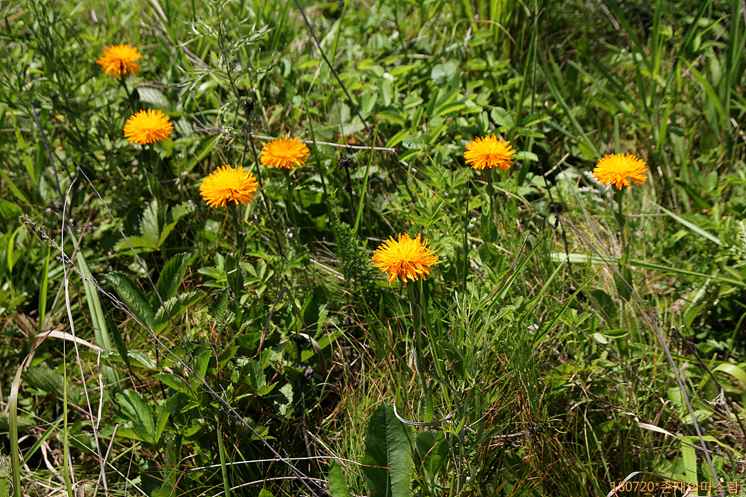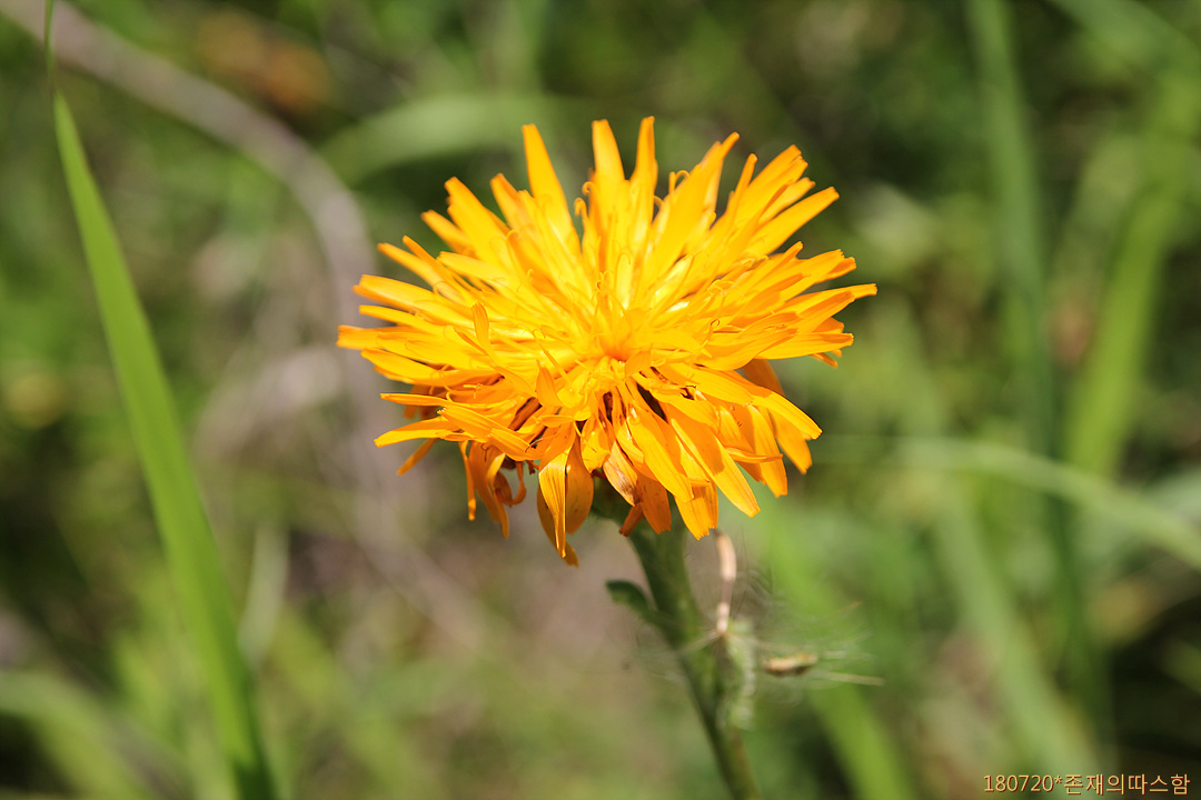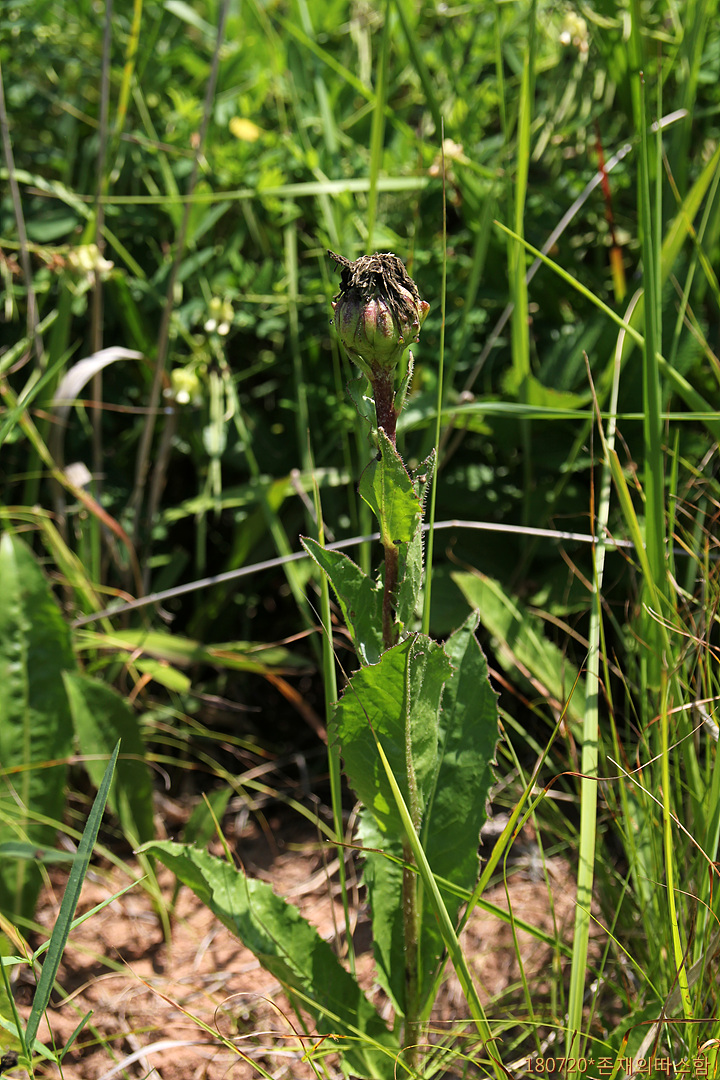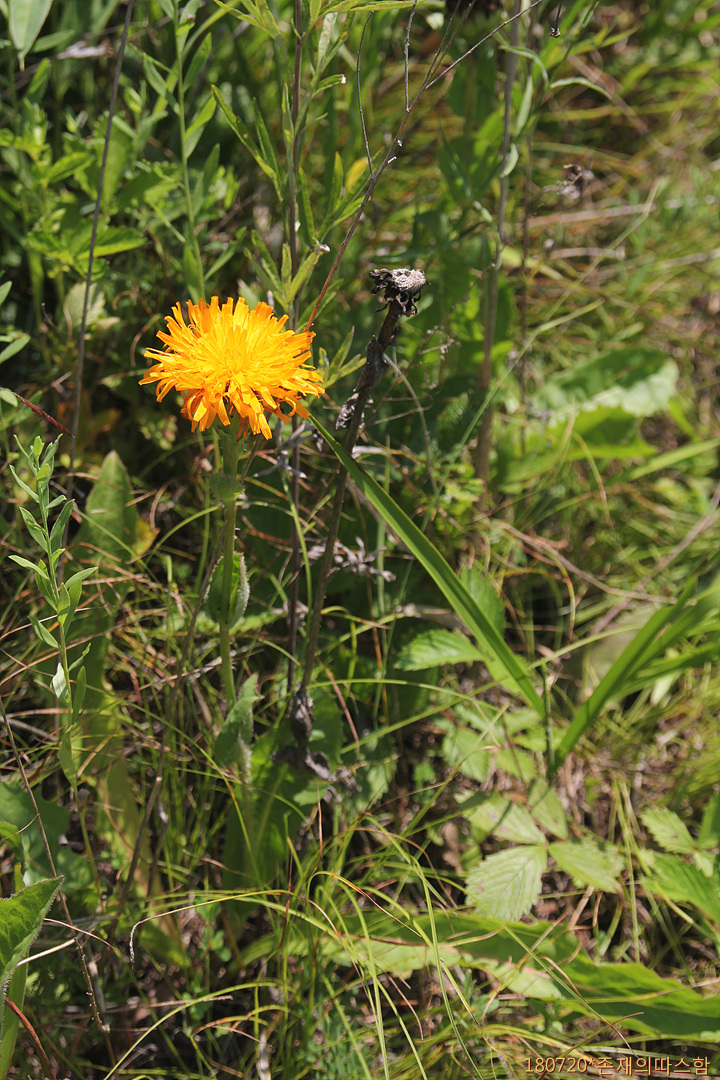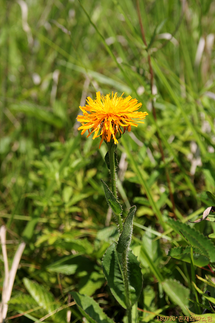 조양천 초원에서 제일 먼저 눈에 띈 꽃이다. 풀밭에 꽃을 피운 종으로는 가장 많다. '개민들레'라 불리기도 하는 서양금혼초에 비해 줄기가 크고 당당하며, 줄기잎이 있고 꽃이 크다. 중국 이름은 '猫儿菊'(묘아국).