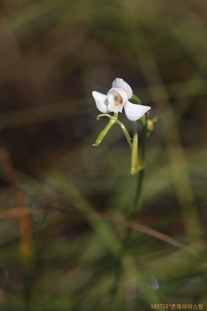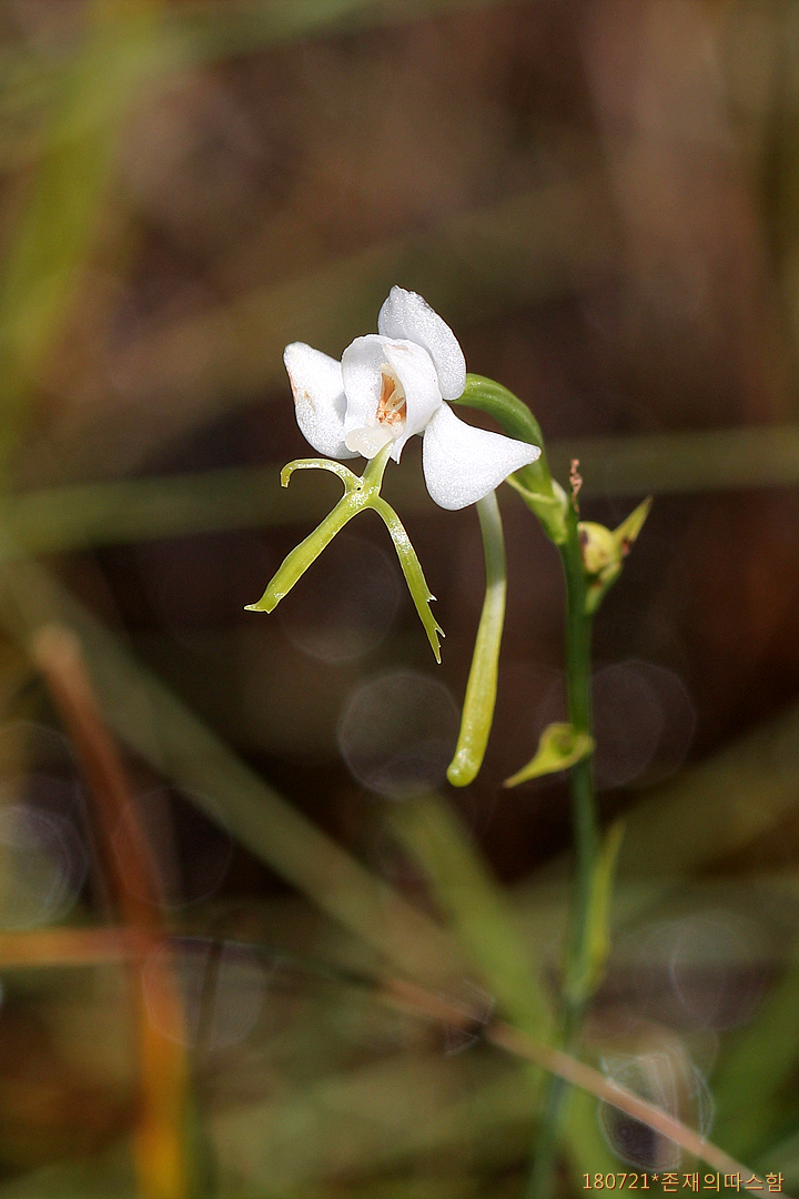 꽃은 6~8월에 피는데 줄기 끝의 총상꽃차례를 이루며, 흰색이다. 입술꽃잎은 3갈래로 갈라져 십자가 모양이 된다. 꽃뿔은 길이 2.5~4cm의 원통형이다. 열매는 삭과, 타원형이며, 길이 2~3cm이다. <국립생물자원관 한반도의생물다양성>