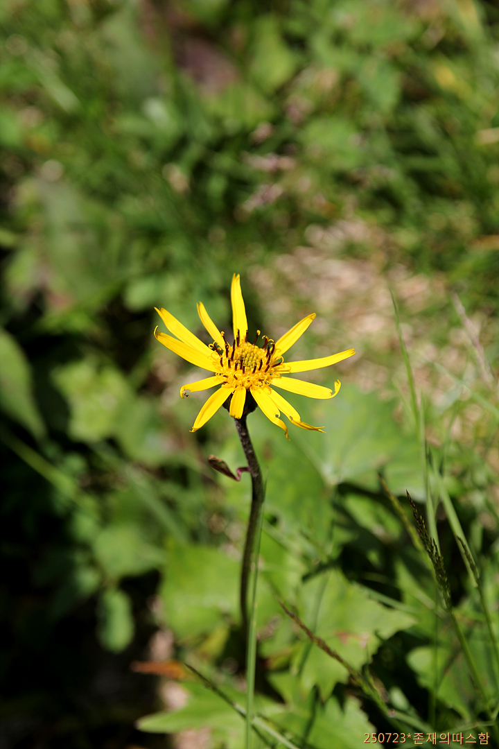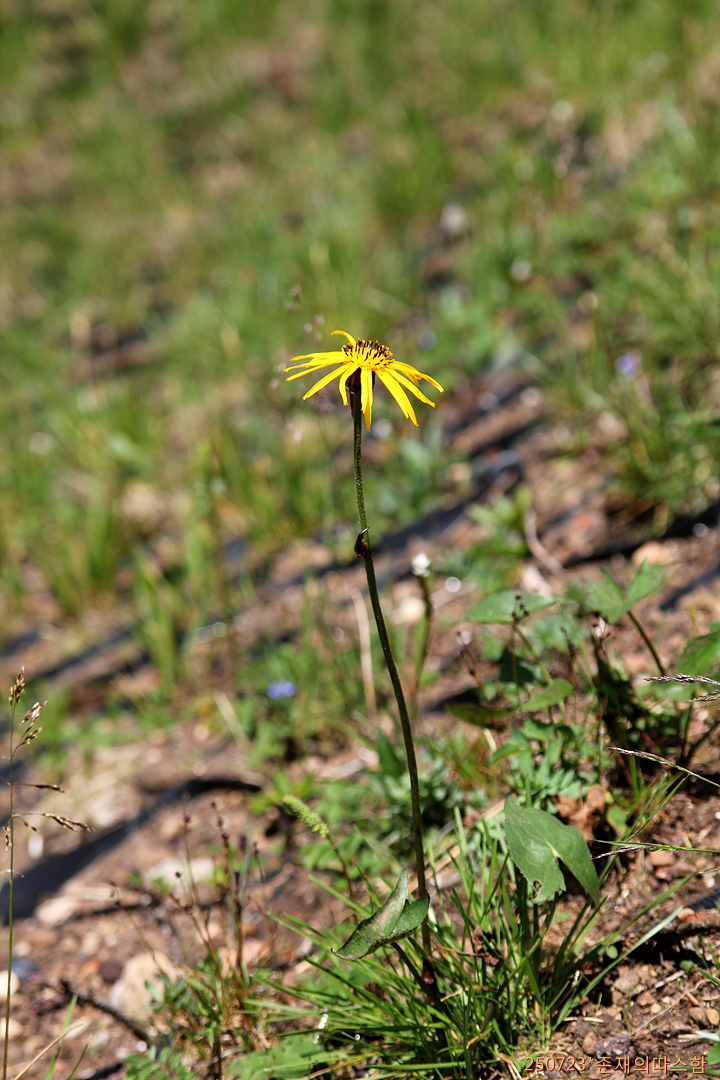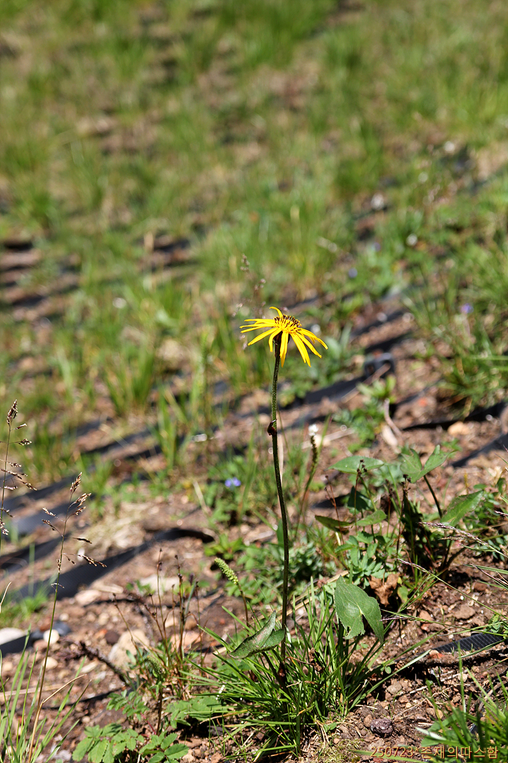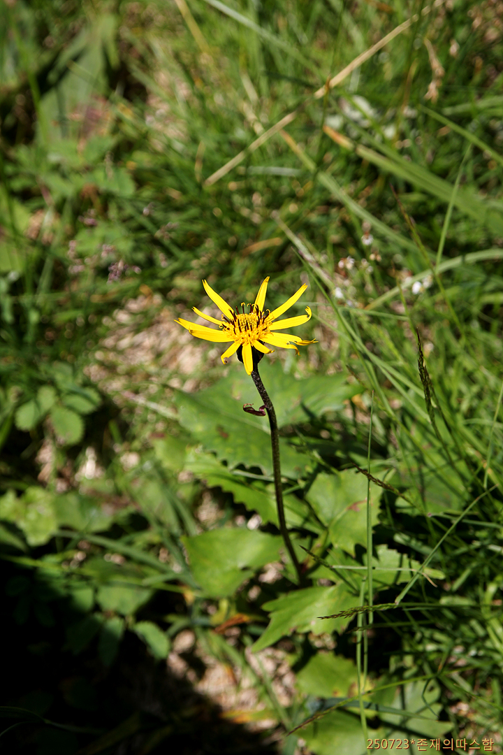꽃은 7~8월에 피는데 줄기 끝에서 머리모양꽃 1개가 달리며, 지름 5~7cm다. 모인꽃싸개는 넓은 종 모양, 13개의 조각이 1줄로 붙는다. 혀모양꽃은 노란색, 길이 2.5~3.5cm, 폭 4mm, 끝은 3갈래로 갈라진다. 관모양꽃은 길이 1cm쯤이고 끝이 5갈래로 갈라진다. 열매는 수과, 어두운 갈색, 길이 5~7mm, 10월에 익는다. 우산털은 연한 노란색이다. <국립생물자원관 한반도의생물다양성>