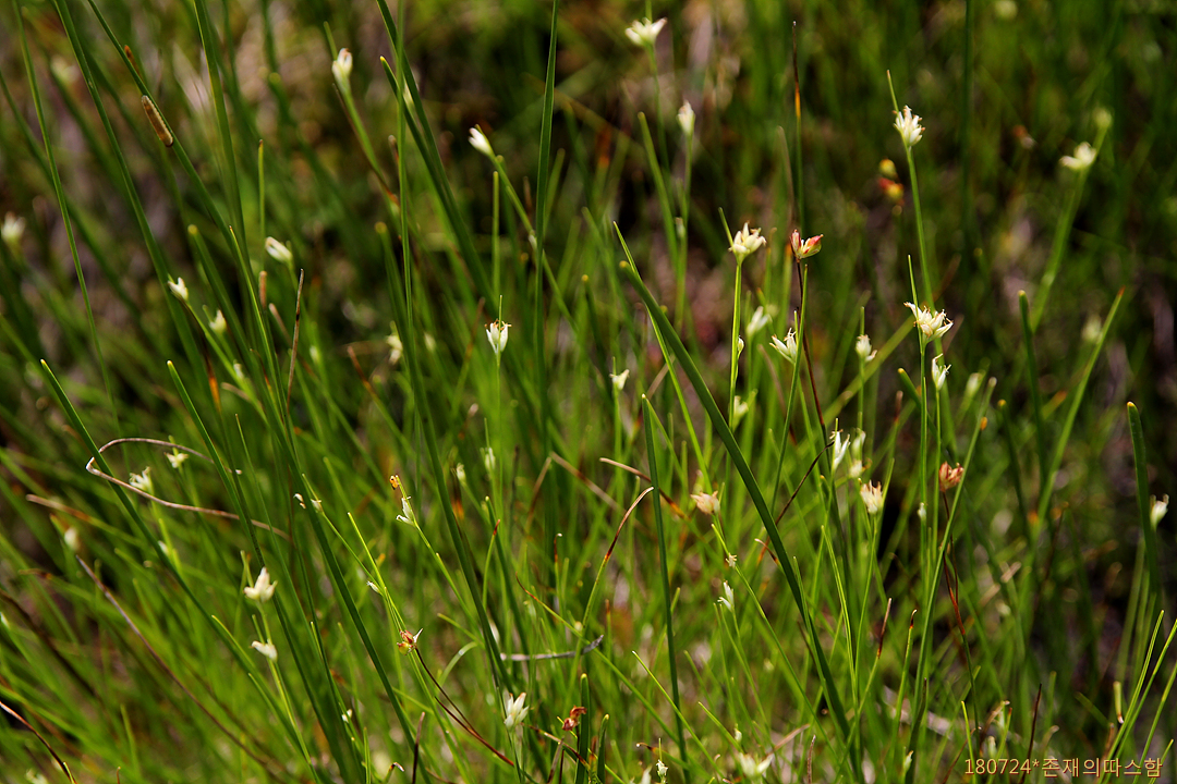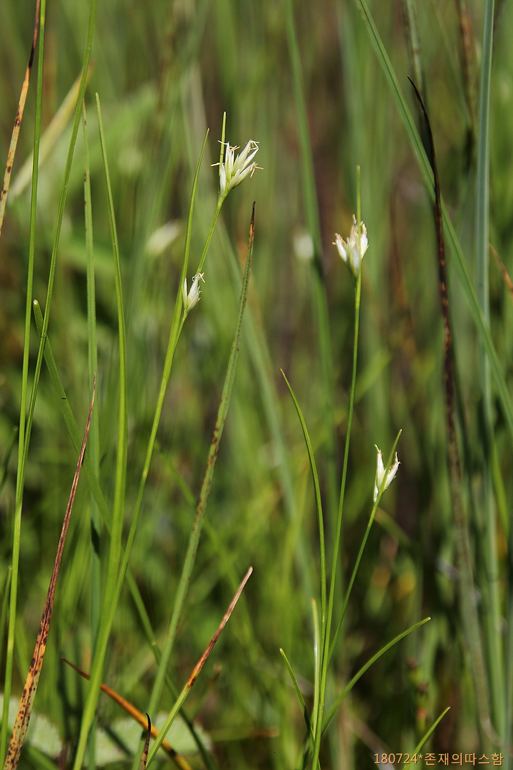 황송포습지에서 처음 만나더니 이곳 습지에서도 만나니 구면이라고 더욱 반갑다. 고양이수염(R. chinensis)에 비해 인편이 백색이다. 암술머리가 두 갈래인 종들 중에서 작은이삭이 거의 줄기 끝에 모여 달리고 화피강모가 8~15개인 점으로 구별된다. '흰골풀아재비'라고도 한다.