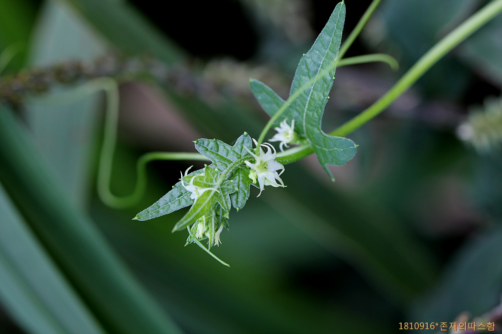● 뚜껑덩굴 Actinostemma lobatum ↘ 목련강 제비꽃목 박과 뚜껑덩굴속 덩굴성 한해살이풀