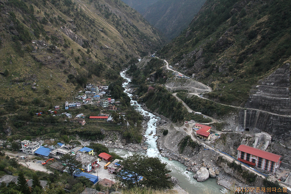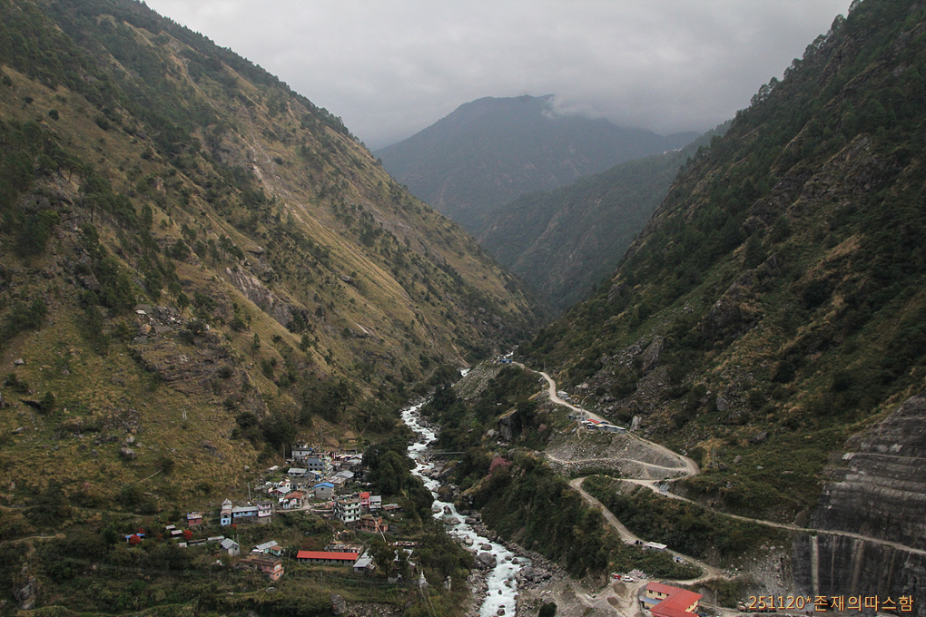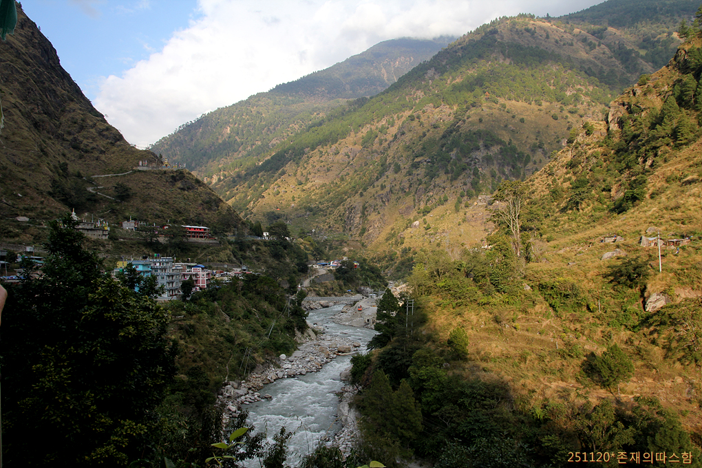 골짜기 아래로 내려서니 뜻밖에 강줄기를 따라 꽤 넓은 평야지대가 펼쳐진다. 히말라야가 지척인 곳에서 펼쳐지는 뜻밖의 풍경이 흥미롭다. 한동안 북서 방향으로 달리다 랑탕계곡의 하류인 트리슐리강을 만나 오른쪽으로 꺾어지며 북향한다.