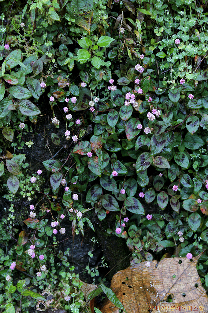 메밀여뀌(Persicaria chinensis). 덩굴이 길고 흰 꽃이 피는 모밀덩굴(P. capitata)과 유사한 종이다.