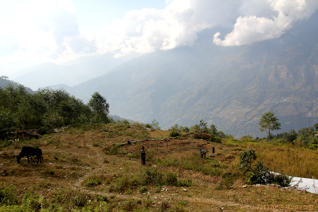 산지임에도 나무들이 늘어서 있는 숲속에는 좁고 긴 논밭들이 이어져 있고 소들이 한가롭게 풀을 뜯는 풍경이 펼쳐진다. 네팔 장족의 전통주 뚱바(Tongba)의 원료가 된다는 처음 보는 풀, 수수 같은 열매를 달고 고개를 숙인 키작은 작물 kodo millet가 자라는 밭도 보인다. 깊은 협곡 건너편 높은 산지에도 계단식 논들이 이색적인 풍경을 이루고 있다.