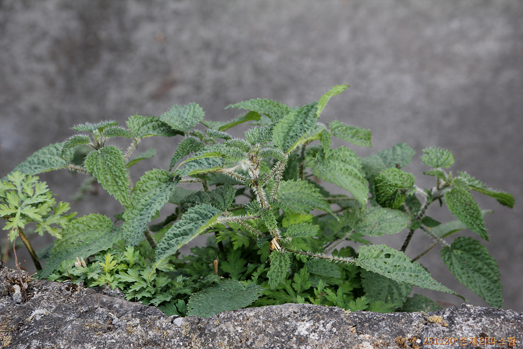쐐기풀의 일종, 히말라야 쐐기풀 Urtica himalayensis. 서양쐐기풀과 비슷하면서도 잎 앞면과 줄기에 가시털이 많다. 이 지역에서 흔히 요리 재료로 이용된다.