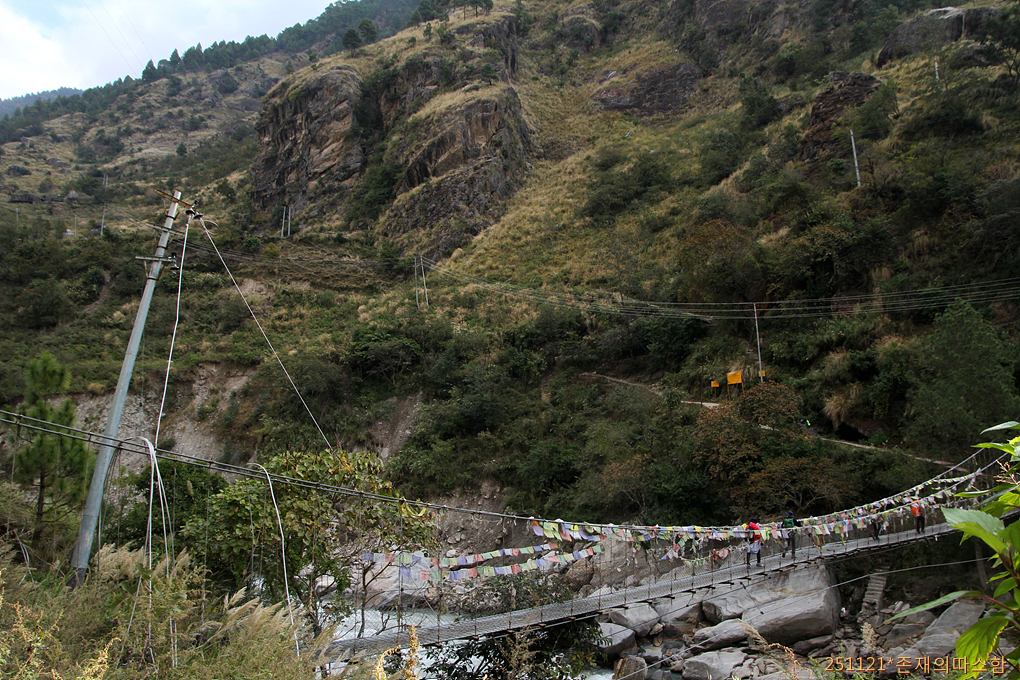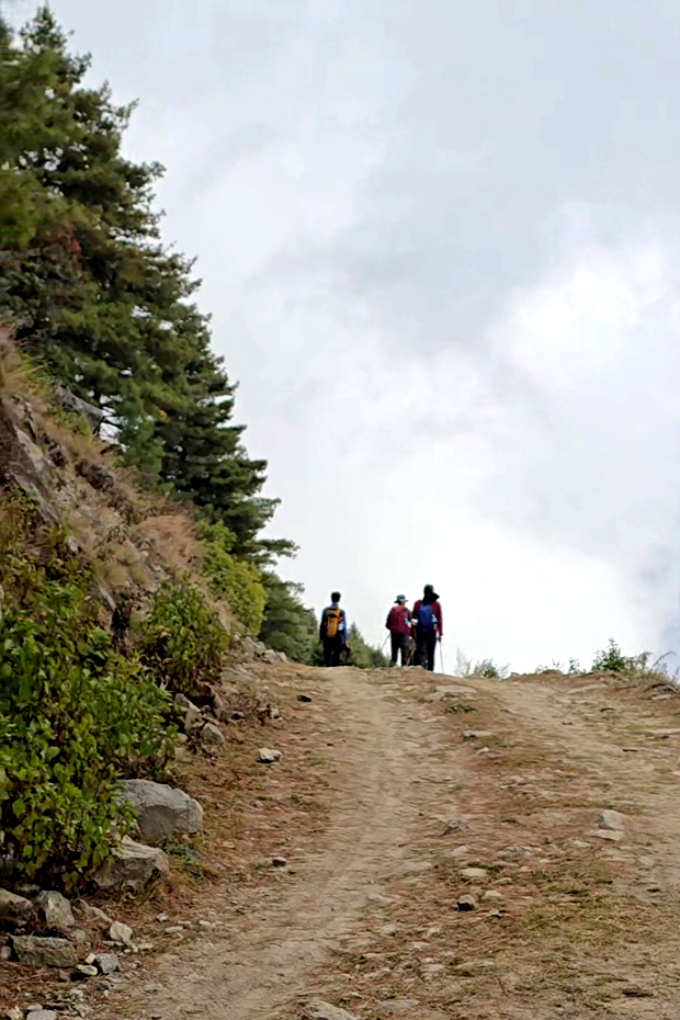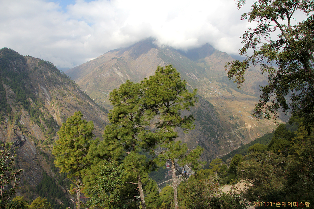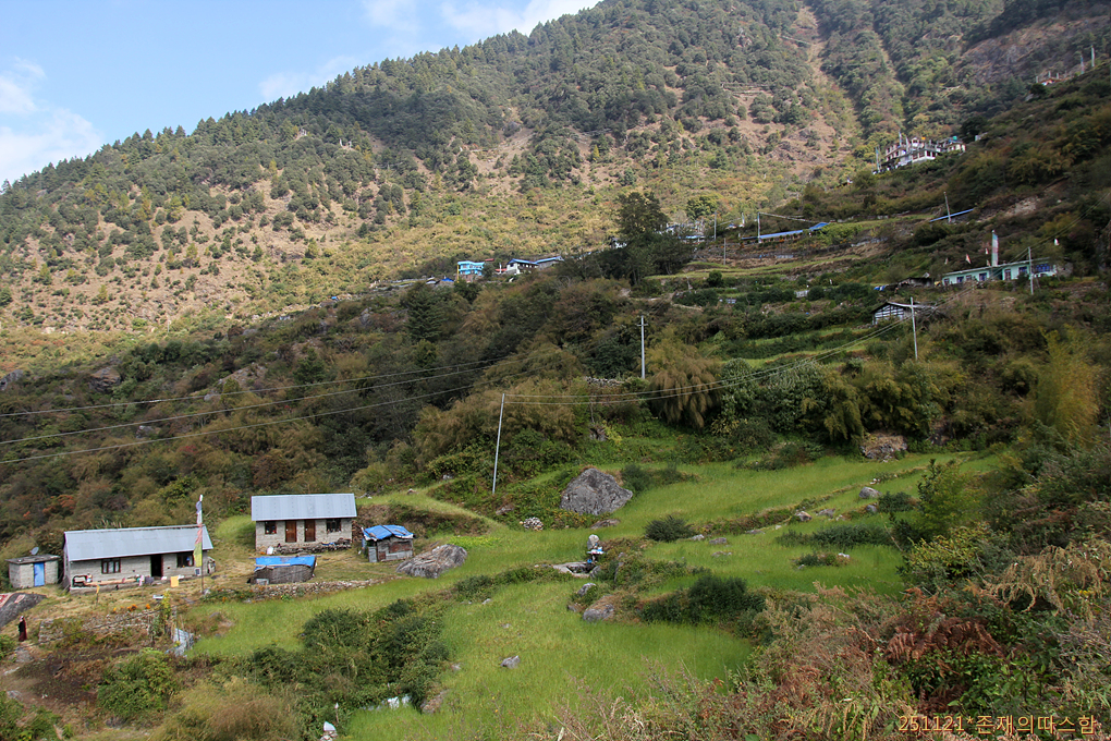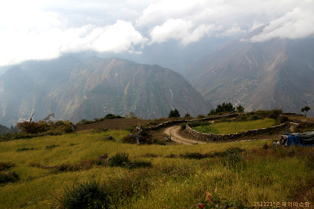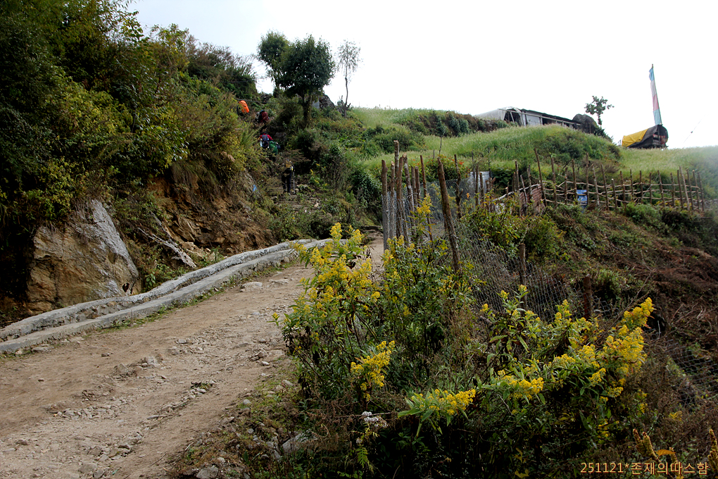 마을을 지나 랑탕계곡이 있는 동쪽 능선으로 가로지르며 마지막 깔딱고개로 향하고 있다.
