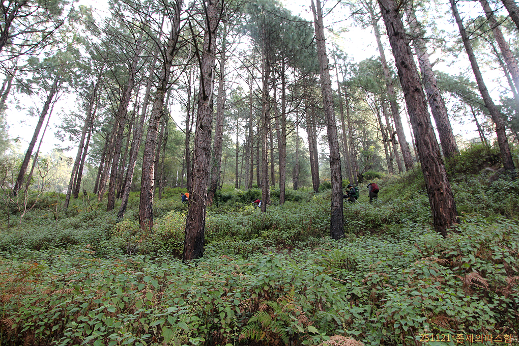 소나무 숲이 늘어선 침엽수대를 지나고...
