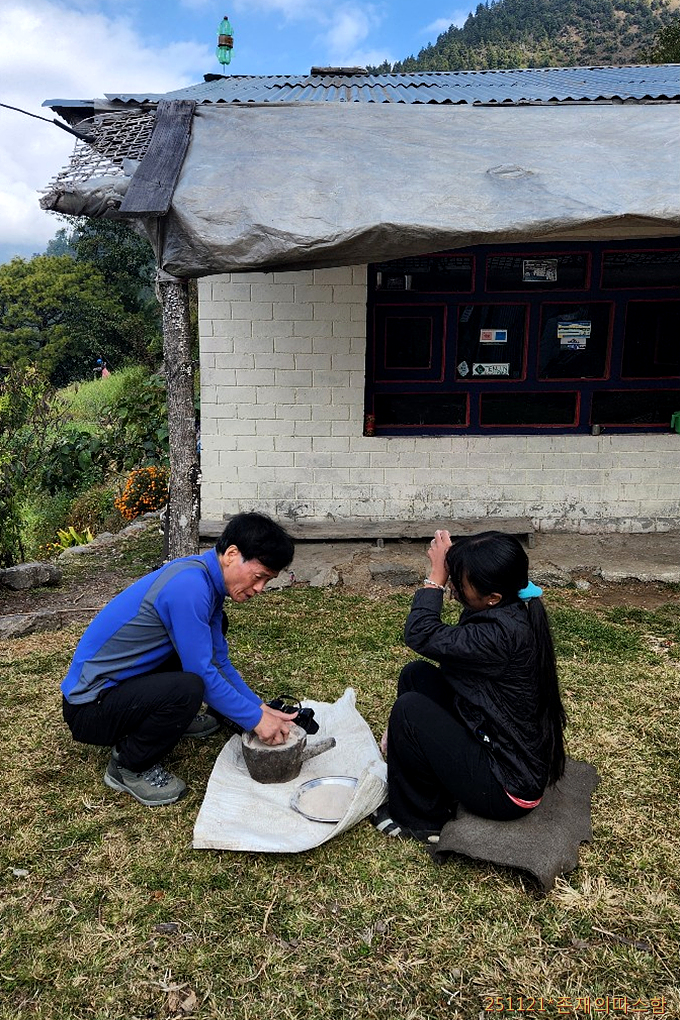 밤새 이불 속으로 스며드는 한기에 조금 떨었는데 아침 식사 때에야 대장 그리메 님이 장 속에 여분의 이불이 더 있었다고 이야기 한다. "헐~."이란 말은 이럴 때 쓰는 것 같다.