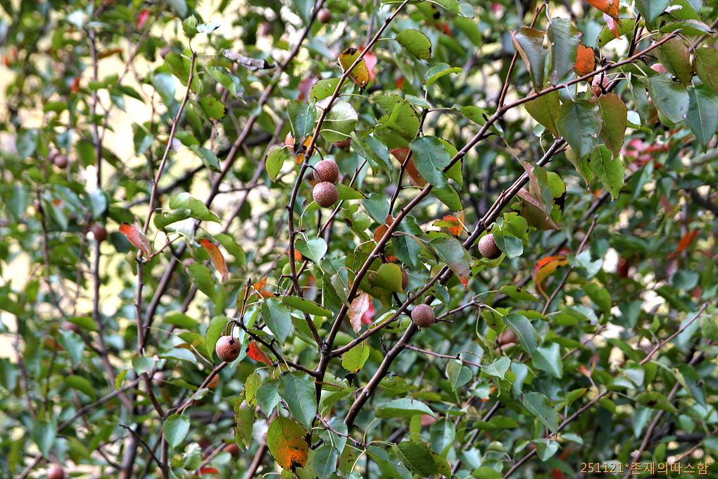 돌배나무와 닮은 배나무속 나무. 히말라야돌배(wild Himalayan pear) Pyrus pashia로 추정된다.