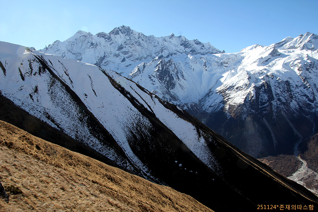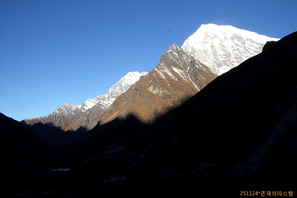 랑탕계곡 건너편 설산 연봉들과의 경계도 모호해진다.