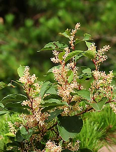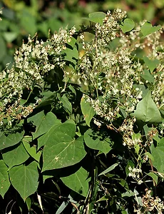 Fallopia15 하수오 Fallopia ciliinervis 영흥중학교로 넘어가는 고갯마루에서 나무를 타고 올라 수없이 많은 꽃차례를 올리고 있는 하수오 덤불을 만난다. 꽃이 높은 곳에 있어 세밀한 사진을 담을 수 없는 점이 아쉽다. 마디풀과 닭의덩굴속 덩굴성 여러해살이풀로 전체에 털이 없다. 뿌리는 땅속으로 뻗으면서 고구마 같은 붉은빛이 도는 덩이뿌리가 달린다. 총상으로 달리는 원추꽃차례의 흰 꽃은 닭의덩굴이 그렇듯 작고 희미하다. 중국에서 들어와 재배된 약용 식물로 야생화하여 자라는 모습이 종종 관찰된다. '적하수오'라고도 하며 덩이뿌리는 강장, 탈모 등에 약용한다. 2024. 10. 19. 영흥도 ● 하수오 Fallopia multiflora | tuber fleeceflower, Chinese knotweed ↘ 목련강 마디풀목 .. 2024. 11. 6. 삼도하수오 Fallopia koreana 동료들과 떠난 여름 여행 첫 산행에서 뜻밖의 덩굴풀을 만난다. 골짜기 주변에서 눈맞춤하면서 알 듯하면서도 종내 그 이름이 떠오르지 않는다. 심장형의 잎 모양과 메밀 비슷한 줄기의 형태, 세 갈래인 화피를 보면서 마디풀과 덩굴식물인 하수오와 나도하수오를 떠올렸지만 꽃차례가 다르지 않은가~. 닭의덩굴속을 검색하며 가까스로 그 이름을 찾을 수 있었다. 암수딴그루인데 수꽃이 핀 수그루만 만나 닭의덩굴 비슷한 열매를 담지 못해서 아쉽다. 1996년 민주지산 삼도봉에서 발견 신종으로 보고된 삼도하수오는 마디풀과 닭의덩굴속 한반도 고유종이다. 하수오나 나도하수오에 비해 줄기가 왼쪽으로 감기고 이삭꽃차례가 1차 분지하며 꽃자루에 털이 거의 없고 암술머리의 표면이 돌출되며 화피 날개가 미약하게 발달하는 점이 다르다. .. 2024. 8. 22. 닭의덩굴 Fallopia dumetorum 지하철 역 입구 울타리에 닭의덩굴이 있어 담아본다. 열매의 날개 가장자리가 결각 없이 밋밋하고 열매 자루가 가늘게 긴 것으로 보아 큰닭의덩굴이라기보다는 닭의덩굴로 보인다. 잎밑 양쪽 끝이 날카로운 점도 닭의덩굴의 특징에 가까워 보인다. 화기가 지나 꽃을 담지 못한 점이 다소 아쉽다. 영명은 '잡목림의 덩굴식물'이라는 뜻의 'copse bindweed'. 원산지는 유럽, 서아시아로 북반구 온대지역에 널리 분포하고 있다. 2024. 06. 23. 서울 2024. 07. 01. ● 닭의덩굴 Fallopia dumetorum | copse bindweed, thicket bindweed ↘ 마디풀목 마디풀과 닭의덩굴속 한해살이 덩굴풀줄기는 길게 뻗어 다른 물체에 감기고 가지가 많으며 종.. 2024. 6. 28. 하수오 Fallopia multiflora(Reynoutria multiflora) 안면도 민가 지역을 지나다 울타리를 뒤덮고 있는 꽃차례가 유난히 풍성한 닭의덩굴속 식물을 만난다. 열매 모양으로 닭의덩굴이나 큰닭의덩굴인가 싶었는데 난상 심장형의 잎 모양이나 원뿔 모양의 꽃차례로 보아 하수오인 듯하다. 민가에서 기르는 것인지 야생화한 것인지... 일본과 중국에 분포하고, 우리나라에서는 각지에서 재배하며, 재배하던 것이 야생화하여 자라기도 한다. 덩이뿌리를 강장, 탈모, 우울증에 약용한다. 2017. 10. 29. 안면도 ● 하수오 Fallopia multiflora | tuber fleeceflower, Chinese knotweed ↘ 목련강 마디풀목 마디풀과 닭의덩굴속 덩굴성 여러해살이풀줄기는 가늘며 전체에 털이 없다. 뿌리는 땅속으로 뻗으.. 2017. 11. 8. 나도하수오 Fallopia ciliinervis 마디풀과 닭의덩굴속의 덩굴성 여러해살이풀로 국내에만 자생하는 특산 식물이나 희귀 및 멸종 식물로 지정되어 있다. 하수오(F. multiflora)와 닮아 나도하수오라 부르며, 하수오에 비해 땅속줄기의 단면은 븕은색이고 잎은 좁은 난형으로 끝은 길게 뾰족해지며 가장자리에 물결 모양의 톱니가 있고 잎맥에 털이 있다. 덩이뿌리는 살균, 소염, 지혈 작용이 있어 '홍약자(紅藥子)'라 하며 약용한다. 줄기는 그 해에 자라나며 굵고 속은 비었다. 전국의 높은 산 산능선을 따라 풀밭에서 자란다. 홍천 ● 나도하수오 Fallopia ciliinervis | Hairy-vein knotweed ↘ 마디풀목 마디풀과 닭의덩굴속 덩굴성 여러해살이풀 줄기는 길이가 2m 가량 자라고 많이 갈라져서 엉킨다. 뿌리는 굵은 목질이고.. 2017. 9. 2. 큰닭의덩굴 꽃과 열매 Fallopia dentatoalata 큰닭의덩굴은 유럽에서 귀화한 마디풀과 닭의덩굴속의 한해살이 덩굴풀이다. 꽃이 모호하여 관찰하기 쉽지 않은데 주렁주렁 달린 열매 속에 하나 달린 깨알 같은 꽃을 찾아낸다. 마디풀과의 꽃이 그렇듯 큰닭의덩굴은 꽃잎이 따로 없고 화피의 끝부분이 꽃잎의 형태를 형성하여 8개의 수술과 3개의 암술대를 감싸고 꽃이 피면서 날개가 자라 열매가 된다. 2016. 09. 24. 남한산성 ● 큰닭의덩굴 Fallopia dentatoalata ↘ 마디풀목 마디풀과 닭의덩굴속 한해살이 덩굴풀덩굴성으로서 잔털같은 돌기가 있고 길이 1m 정도 뻗는다. 잎은 어긋나기하고 화살 모양의 달걀모양이며 길이 3-6cm, 폭 2.5-4cm로서 끝이 뾰족하고 심장저이며 양쪽 돌기의 끝이 둔하다. 엽병은 길이 1-6.. 2016. 9. 29. 호장근 꽃 Fallopia japonica 호장근은 우리 나라에 자생하는 마디풀과의 식물로는 가장 큰 풀이다. '호장(虎杖)'은 '범 막대기'이니 막대기 모양의 줄기에 호피와 같은 붉은 무늬가 있는 데서 유래한 이름이다. 볕이 잘 드는 냇가나 산기슭에 자라는데, 곧게 벋은 굵은 줄기가 관목처럼 보이지만 초본이다. 가을이 되면 지상부의 줄기는 모두 말라 죽